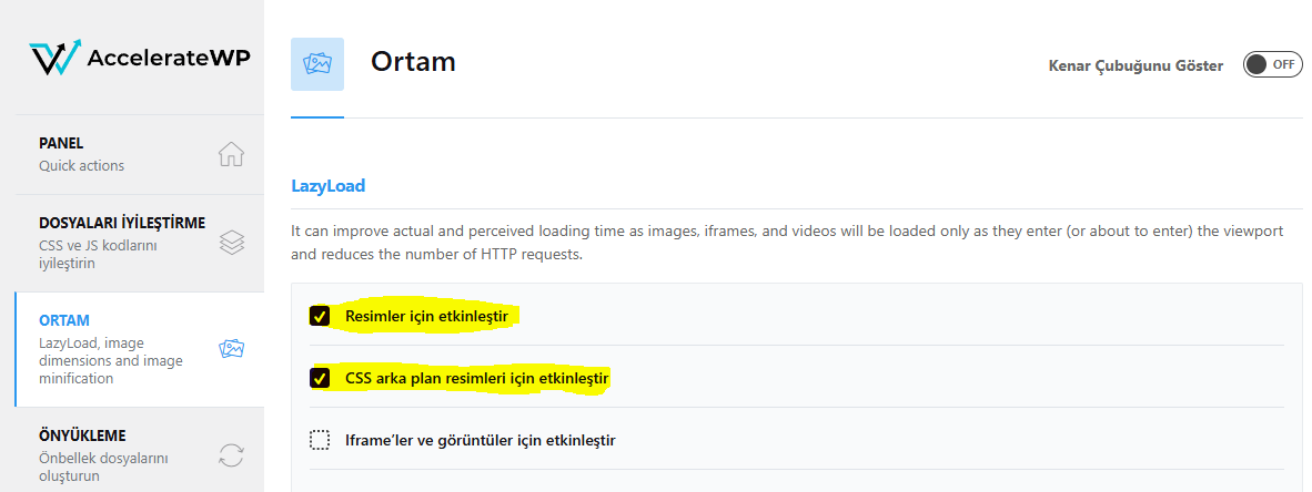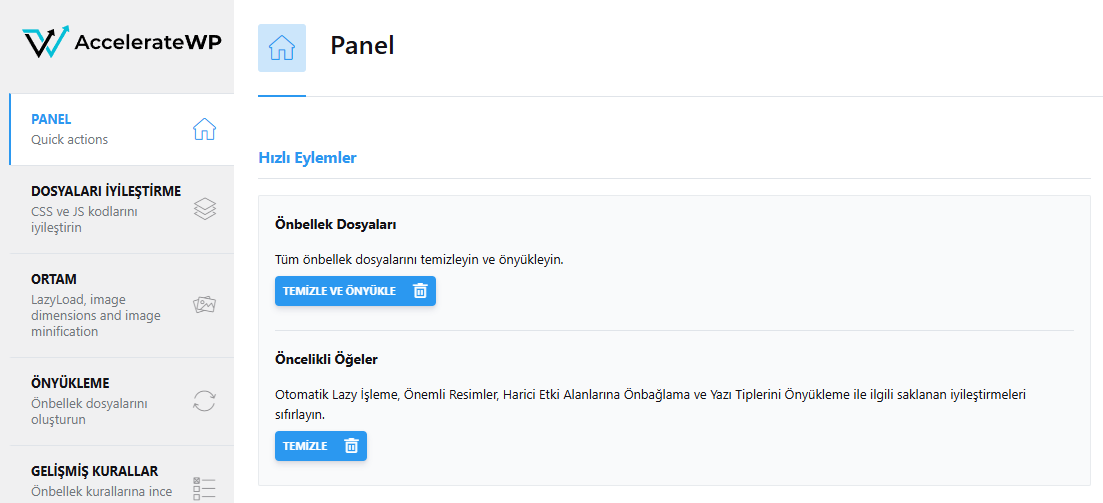 AccelerateWP Panel Özellikleri ve İnce Ayarlar
