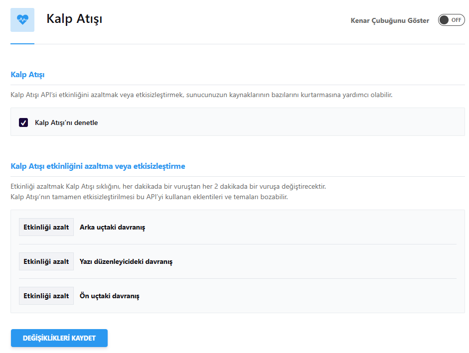 • Kalp Atışı (Heartbeat): Heartbeat API etkinliğini yöneterek sunucu kaynaklarını gereksiz tüketimden koruyabilirsiniz.